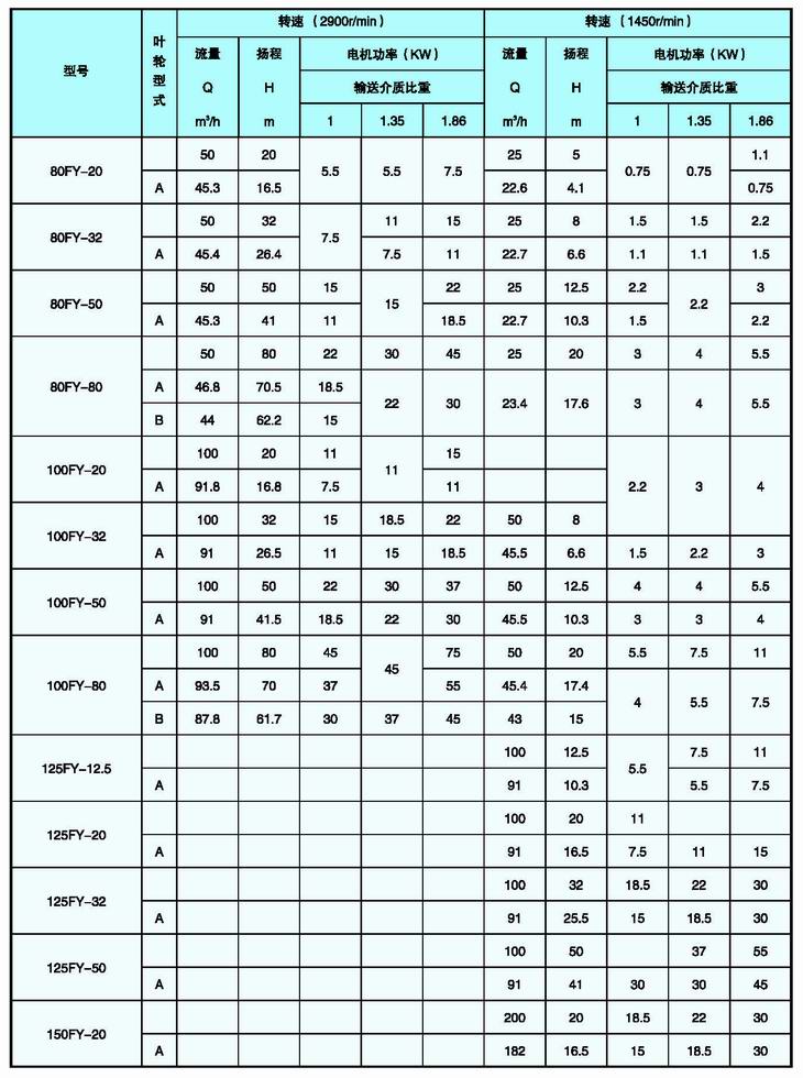 FYB型系列液下泵是立式單級單吸液下離心泵。用于輸送不含固體顆粒懸浮和不易結晶的液體。被輸送介質(zhì)溫度為-20~105℃。特殊需要-50~300℃,該系列不銹鋼液下泵的特點(diǎn)是液下式,泵的工作部分浸沒(méi)在液體中,故占用面積小,軸封無(wú)泄漏等特色。不銹鋼液下泵廣泛用于化工、石油等工業(yè)部門(mén)。如用戶(hù)輸送介質(zhì)含有固體顆粒和易結晶液體時(shí),可選用我公司生產(chǎn)的FY系列懸臂式單吸單級液下離心泵。不銹鋼液下泵適用于涂裝行業(yè)中磷化液輸送,磷肥行業(yè)料漿輸送,電力礦山行業(yè)的礦漿、廢渣輸送,以及化工、石油、制藥、化纖等環(huán)保行業(yè)同類(lèi)工況中使用。