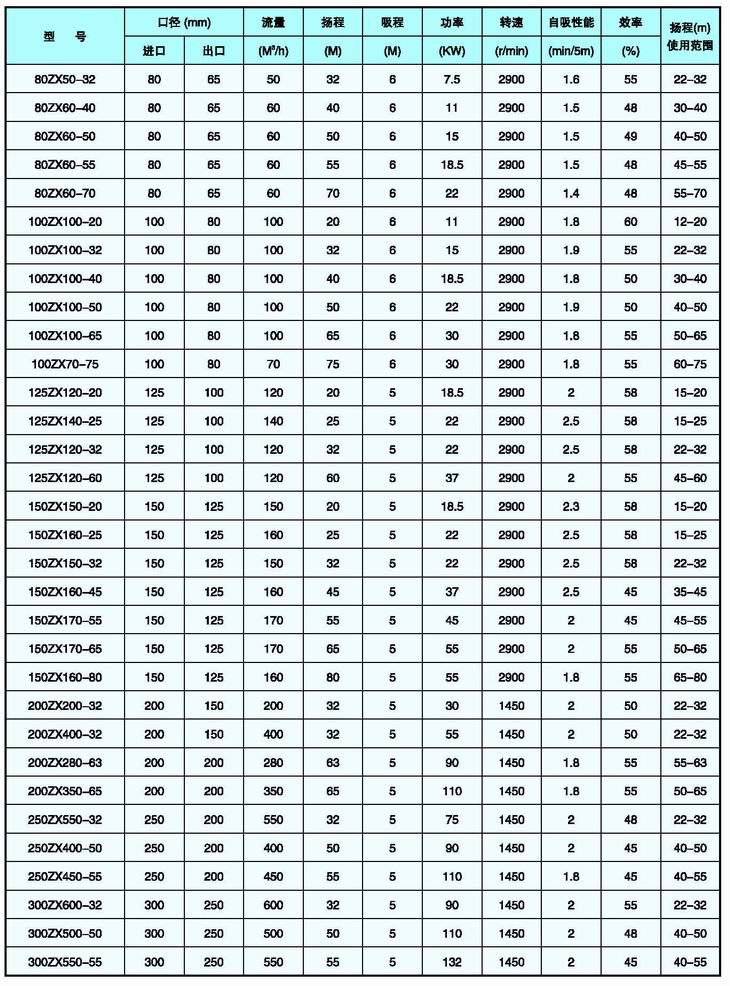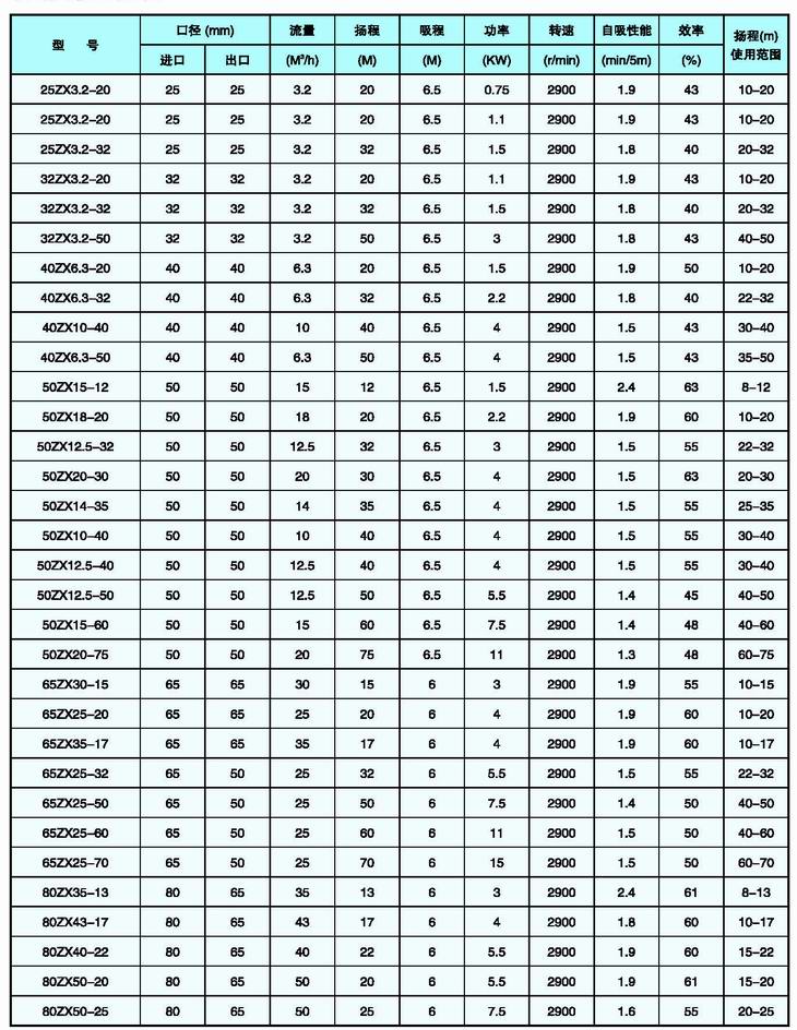 ZX型系列自吸泵屬于自吸式離心泵,它具有結構緊湊、操作方便、運行平穩、維護容易、效率高、壽命長(cháng),并有較強的自吸能力等優(yōu)點(diǎn)。管路中不需安裝底閥,工作前只需保證泵體內儲有定量引液既可。因此簡(jiǎn)化了管路系統,又改善了勞動(dòng)環(huán)境。